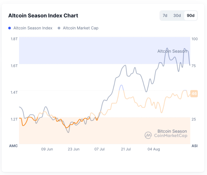 Coinbase Institutional’s global head of research, David Duong, has a different take, as he recently said that “current market conditions now suggest a potential shift toward a full-scale altcoin season as we approach September.”