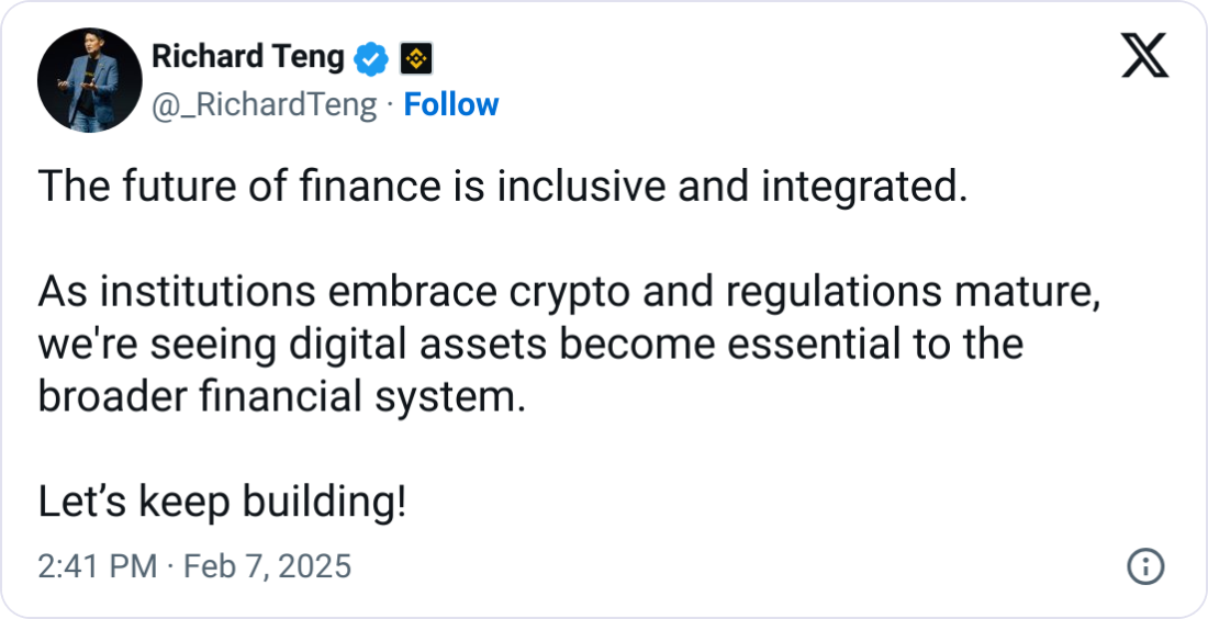 Teng said that inclusive regulations combined with institutional participation are ensuring that the digital asset ecosystem is becoming “essential to the broader financial system.”