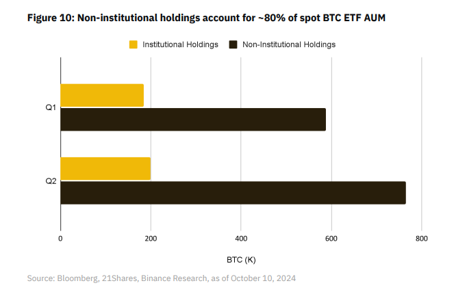 A Binance research report from October 2024 found that 80% of Bitcoin ETF demand comes from retail investors.