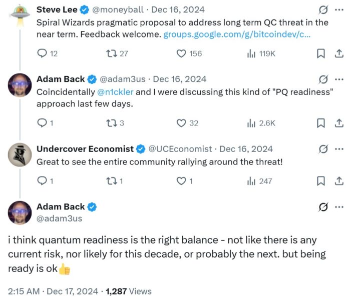 Despite these warnings, most of the Bitcoin community doesn’t see quantum computing as an immediate threat, and there’s no widespread sense of panic.