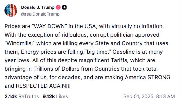 The price of gold climbed to its highest ever level on Monday, reaching $3,485 per ounce after a 1% spike, according to GoldPrice. It came after Trump posted to his social media platform Truth Social on Sunday, stating, “prices are ‘WAY DOWN’ in the USA, with virtually no inflation.”