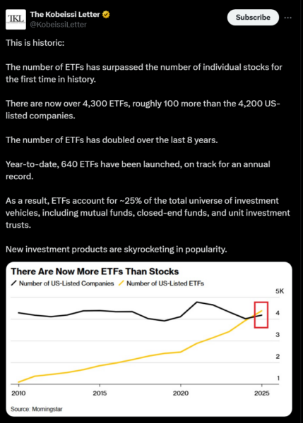 ETFs have become one of the most popular investment vehicles — so widespread, in fact, that they now outnumber publicly listed stocks, according to Morningstar.