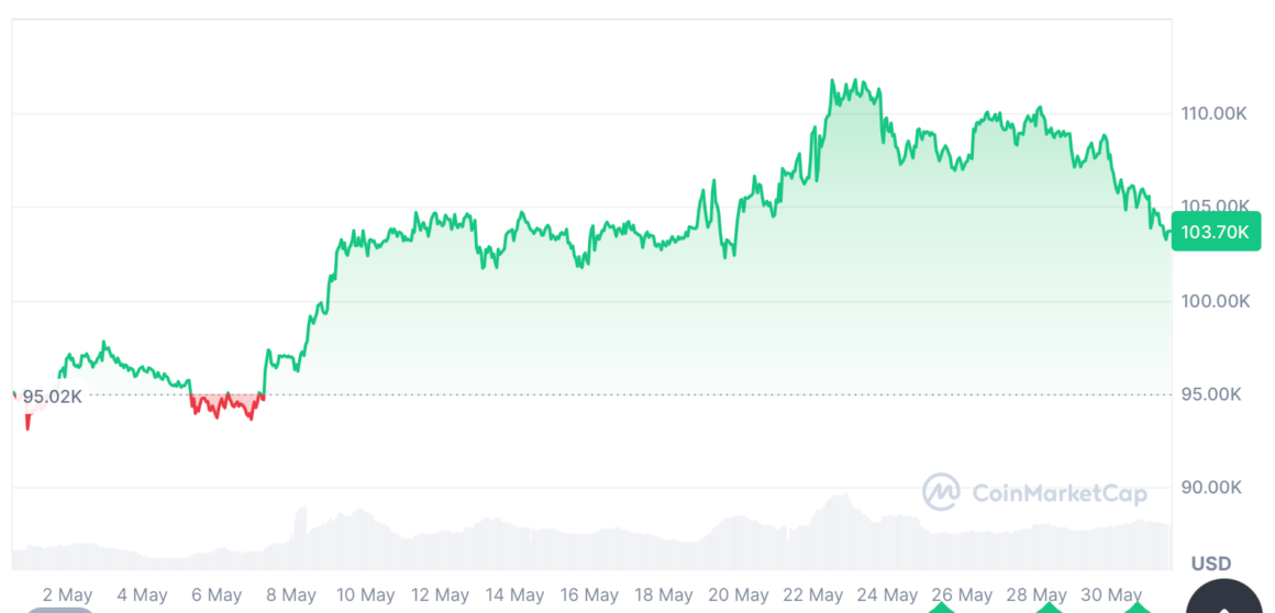 Meanwhile, Bitcoin’s spot price is $103,700, down 2.27% over the past 24 hours, according to CoinMarketCap data.