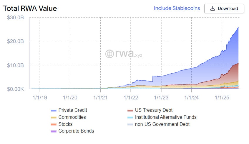 While stablecoins are often excluded from RWA industry metrics, many are backed by government bonds and other tangible assets, effectively classifying them as RWAs.