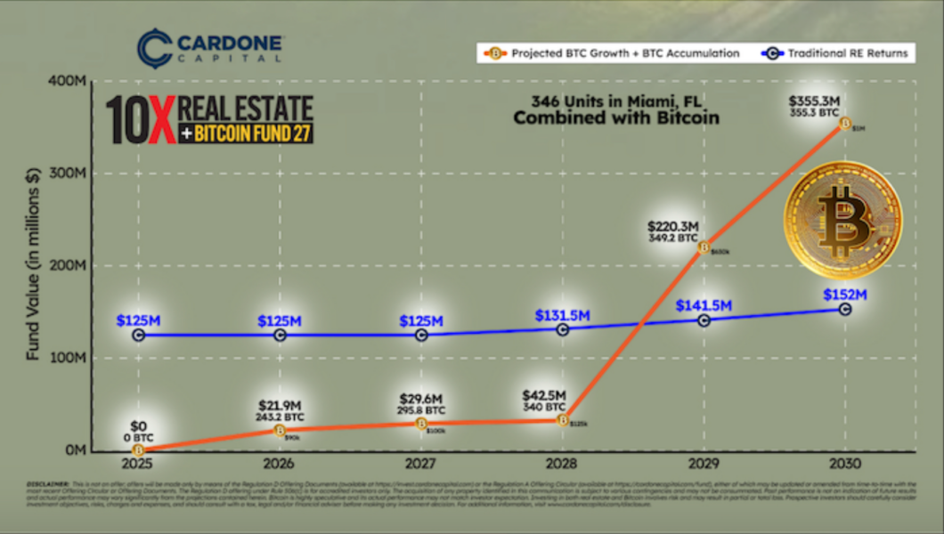 Cardone Capital, a real estate investment firm with over $5 billion in assets under management, launched the 10X Miami River Bitcoin Fund, a dual-asset fund consisting of a 346-unit multifamily commercial property located on the Miami River in Miami, Florida, and $15 million of Bitcoin.