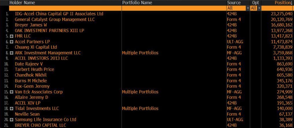 According to the data, Beijing-based IDG-Accel China Capital Fund II is the largest Circle holder with 23.3 million shares, followed by General Catalyst Group Management and James Breyer, holding 20.1 million shares and 16.7 million shares, respectively.