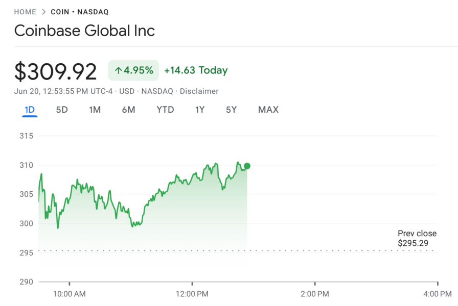 At the time of this writing, Coinbase shares are up 4.95% on the day of the announcement, rising to $309.92 from a close of $295.29 on Thursday, according to Google Finance.