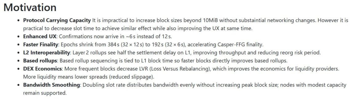 “Faster slots lead to more liquidity, which means lower trading fees for users and increased network effects for Ethereum.”