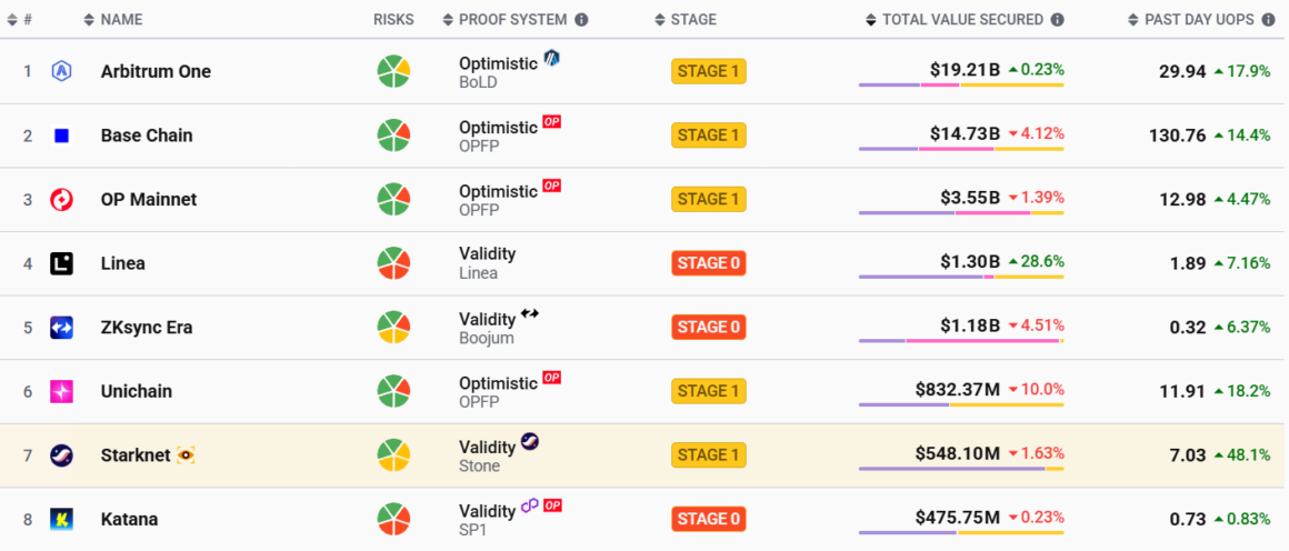 This marked the second “major outage” on the mainnet within two months, creating potential concerns about the reliability of Starknet as Ethereum’s seventh-largest L2 network, with $548 million in total value locked (TVL), according to data from L2beat.com.