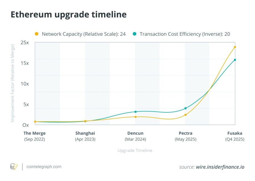 Unlike Pectra, the May 2025 fork that delivered visible changes like account abstraction and higher staking limits, Fusaka operates behind the curtain. It bundles 11 Ethereum Improvement Proposals focused on scalability, node resilience and efficiency, leaving smart contracts untouched.