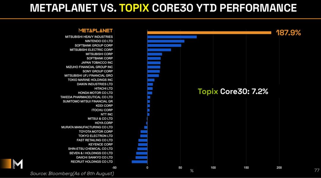 Metaplanet outperforms Japan’s TOPIX Core 30 amid Bitcoin strategy