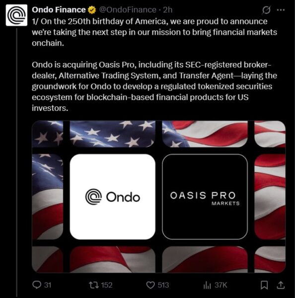 Source: https://cointelegraph.com/news/ondo-finance-acquires-oasis-pro-tokenized-securities-us