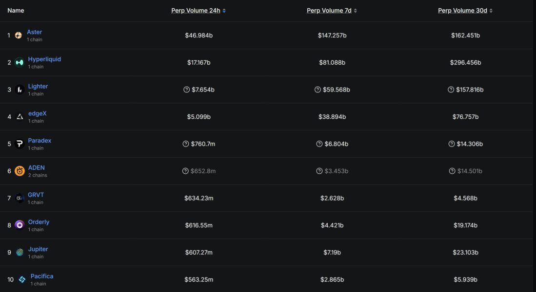 “Aster’s incentive campaigns recently pushed its daily perp volume to record levels, even overtaking Hyperliquid on certain days,” Elkaleh said. Over the past day, Aster has registered around $47 billion in perp volume, more than double Hyperliquid’s $17 billion volume, according to data from DefiLlama.