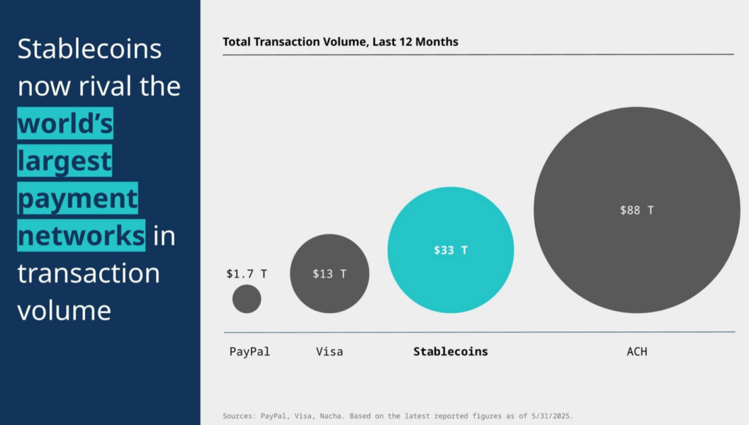 Stablecoin transaction volume close to 20X the volume of PayPal