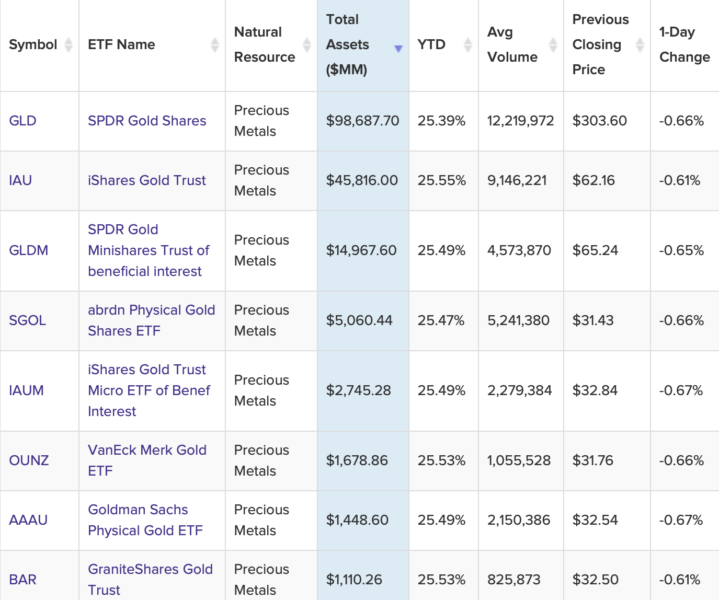 Gold’s price was at $3,304 per ounce on May 30, up $2,327 from a year ago — a 29.5% jump in 12 months. In addition, Gold exchange-traded funds (ETFs) have experienced significant gains year-to-date, with the eight top funds by total assets experiencing increases of more than 25%.