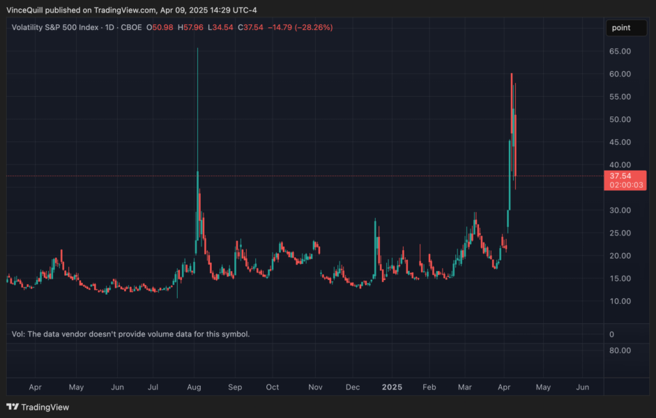 At the time of this writing, the VIX had dropped to 37.5, which still signals extreme market volatility despite the dramatic drop in the last two days.