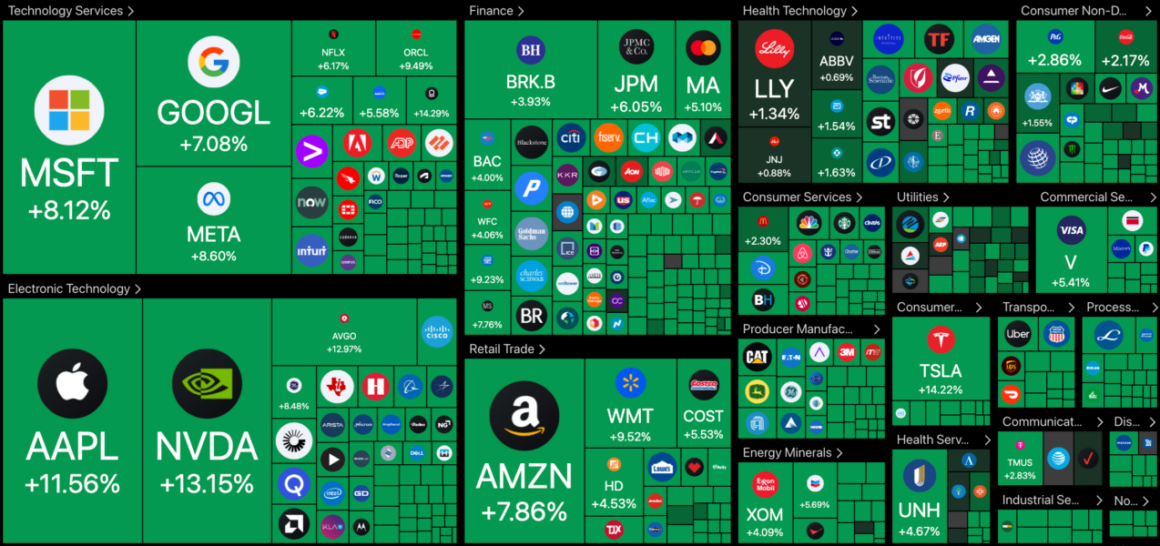 According to data from TradingView, the S&P 500 index rallied close to 7% following the announcement, showcasing the high volatility of capital markets amid the macroeconomic uncertainty and the potential for a protracted trade conflict.