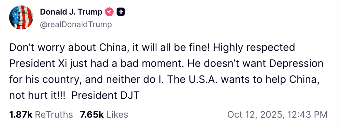 China’s rare earth export announcement had prompted a response from Trump on Friday that sent crypto markets crashing in the worst 24-hour liquidation event in crypto history.