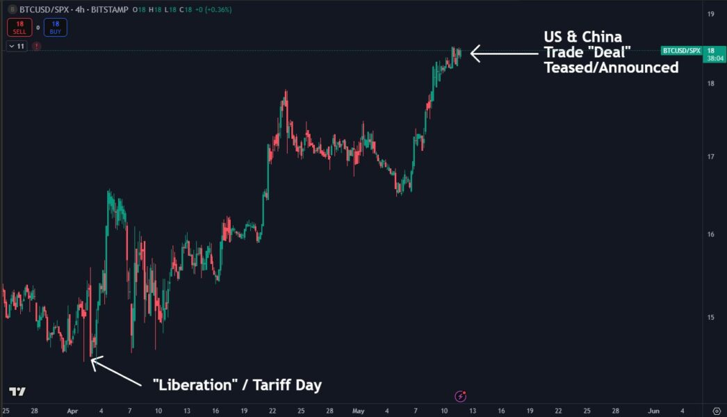 “Theoretically speaking, if the trade uncertainty was what was making BTC outperform, it should stop outperforming after we hit the most important deal, which includes China.”