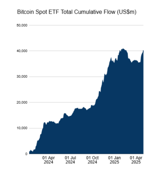 Spot Bitcoin ETFs attracted net inflows of more than $40 billion since launching in January of 2024, according to data from Farside Investors.