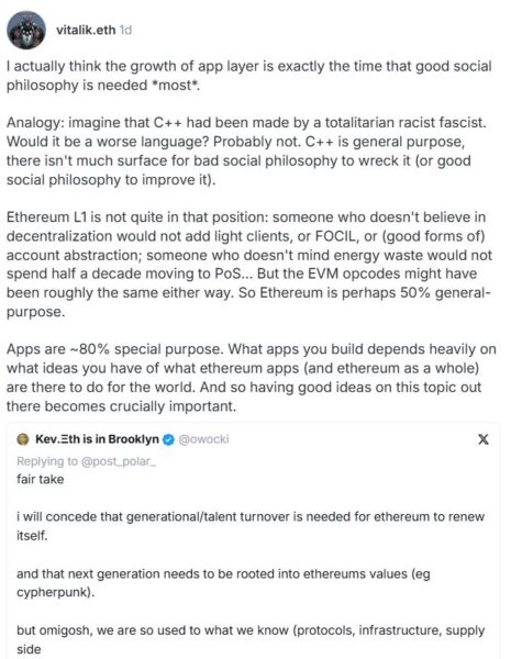 Source: https://cointelegraph.com/news/vitalik-buterin-argues-app-layer-needs-devs-good-social-philosophy